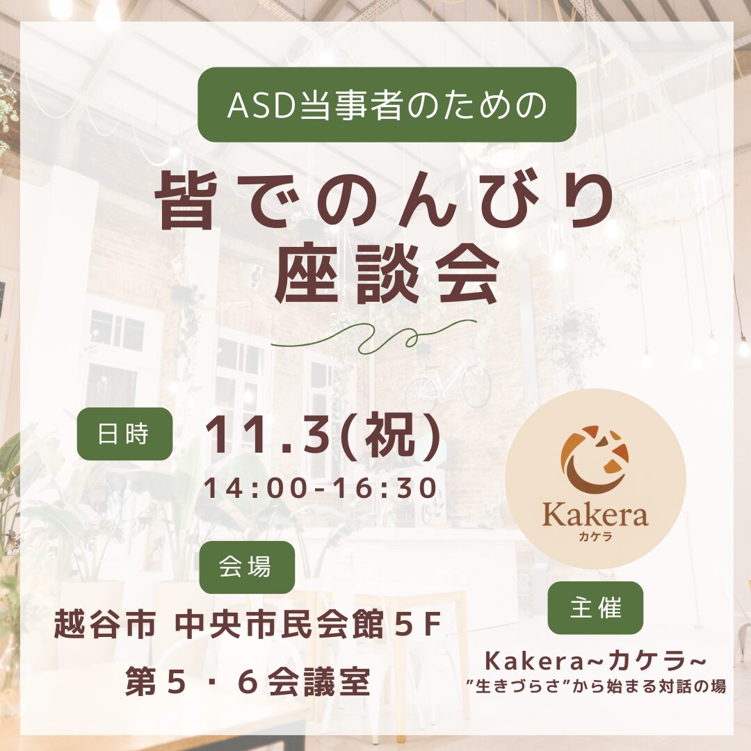 - 対象者:ASD当事者と、その支援者の方 (グレーゾーンOK!診断の有無は問いません)